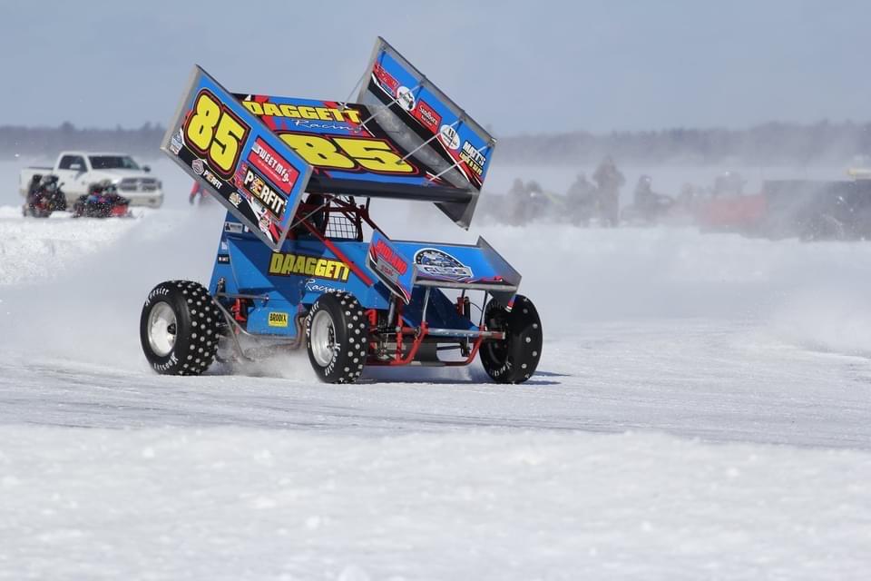 Jacob Sanfacon (#19), from Middleton NH, was excited about racing on studded tires for the first time. Jacob has raced on ice, but only with chains on the wheels. This season was the first year the group in New Hampshire was converting to studs. With racing cancelled on the East Coast, Jacob and his team are making the 19 hour tow to try out the blue Ice on the St Mary’s River and race against Dustin Daggett (#85) Sprints on Dirt and Great Lakes Super Sprints Champion.